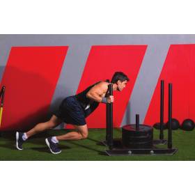 Trineo para ejercicios explosivos de fuerza, tanto para exterior como para interior. Base de caucho deslizante de alta resistencia. Peso regulable.