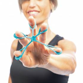 Juego de 3 ejercitadores para la rehabilitación y fortalecimiento de los dedos. 3 resistencias diferentes: amarillo ligero, verde medio, azul fuerte.