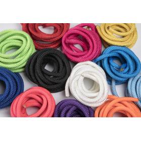 Cuerdas Multicolor para Gimnasia Rítmica, 6 combinaciones distintas. Sello FIG impreso. Válida para competición internacional.Grosor: 9.50mmPeso: 172g Longitud 3m