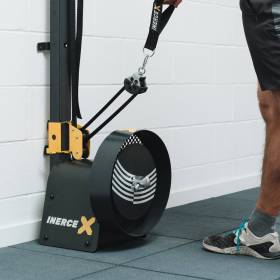 InerceX Wall Pulley es una máquina de ejercicio inercial para la realización de ejercicios de fuerza. Dispone de diferentes volantes intercambiables de diferentes pesos y diámetros que utilizan la inercia para proporcionar una resistencia alta y variable tanto en los movimientos concéntricos como excéntricos.