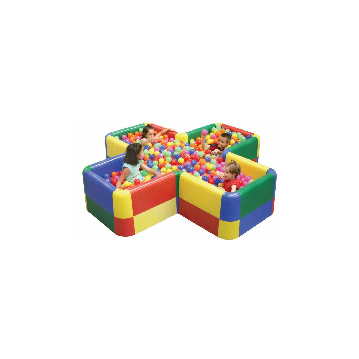 Piscina en forma de cruz altura 52 cm. 130 cm x 130 cm. Para 1200 pelotas.