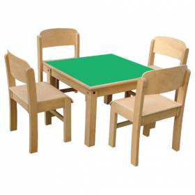 Estructura fabricada en madera de haya maciza de primera calidad, barnizada al agua no toxico. Tablero fabricado con estratificado de gran resistencia. Cantos redondeados para mayor seguridad. Patas desmontables de 5 cm x 5 cm de gran estabilidad. Diferentes colores, Madera Natural, Azul, Rojo, Verde y Amarillo. Acorde a la normativa UNE-EN 1729-1: 2007.